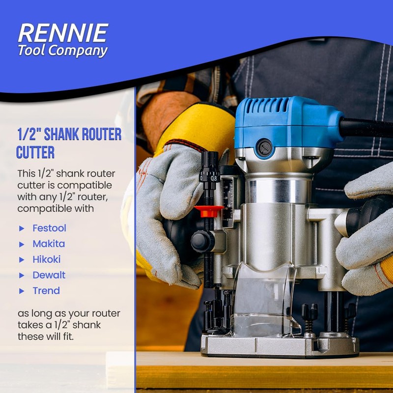 - This 1/2" shank router cutter is compatible with all the leading brands of hand held routers, it is compatible with the Dewalt, Makita, Festool, Hikoki, Vonhaus Trend router etc. As long as your router takes a 1/2" shank these will fit.