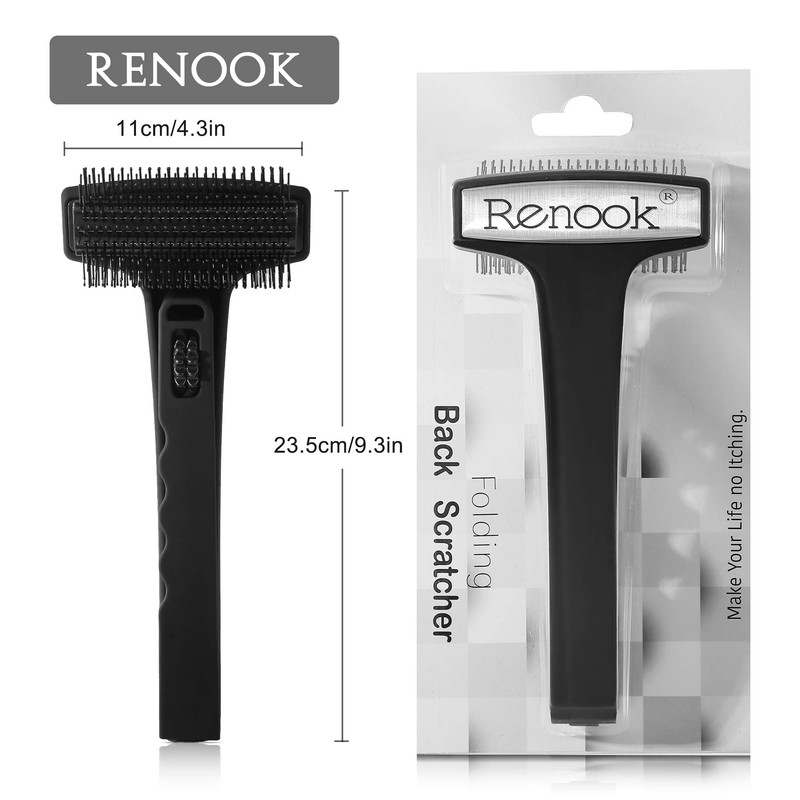 Refined look and premium characters Renook fold back scratcher elegant look, worth to your own or to give as a gift. The back scratcher with outline of the shape of fingers in two side, that's make it easier to grip. The bristles are gentle enough to touch skin directly timely relief of skin itching for you.