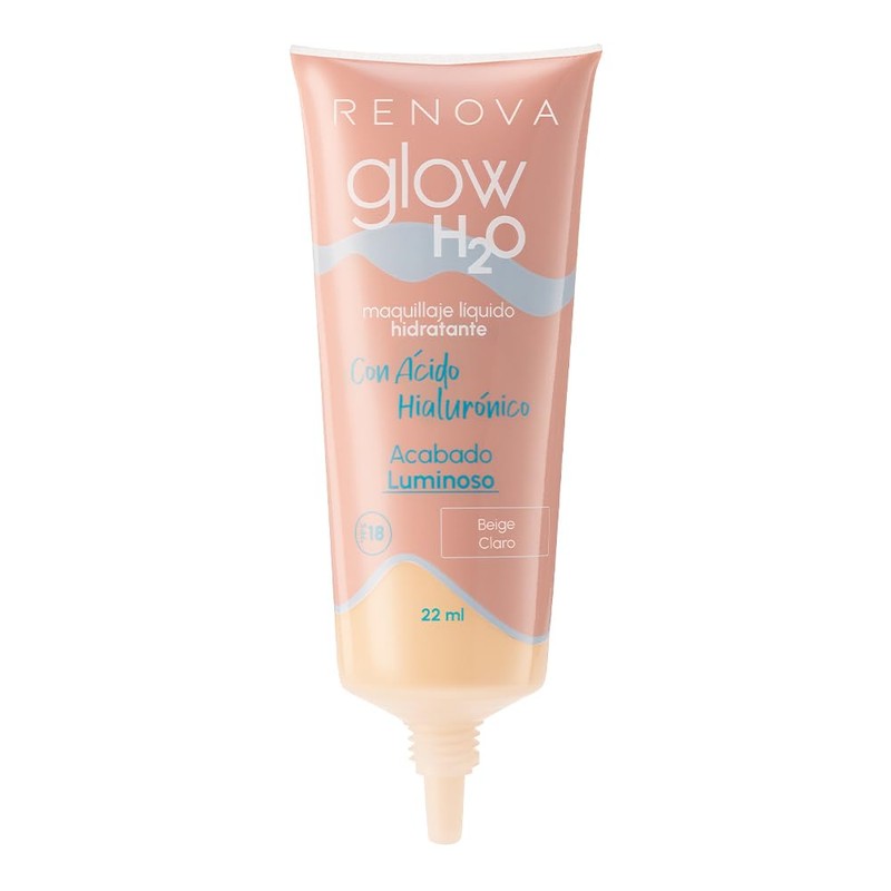 Renova| Maquillaje Liquido Glow H2O, Tono Claro, Con Ácido Hialurónico, FPS 18