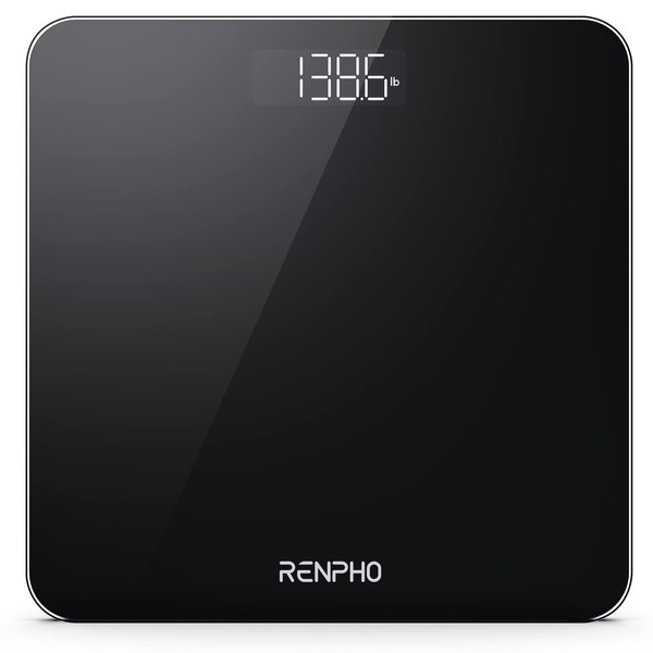 RENPHO Scale for Body Weight, Bathroom Weighing Scale with Backlit LED Display, Highly Accurate & Measures Weight up to 400 lb/180kg, Batteries Included, 11"/280mm, Black