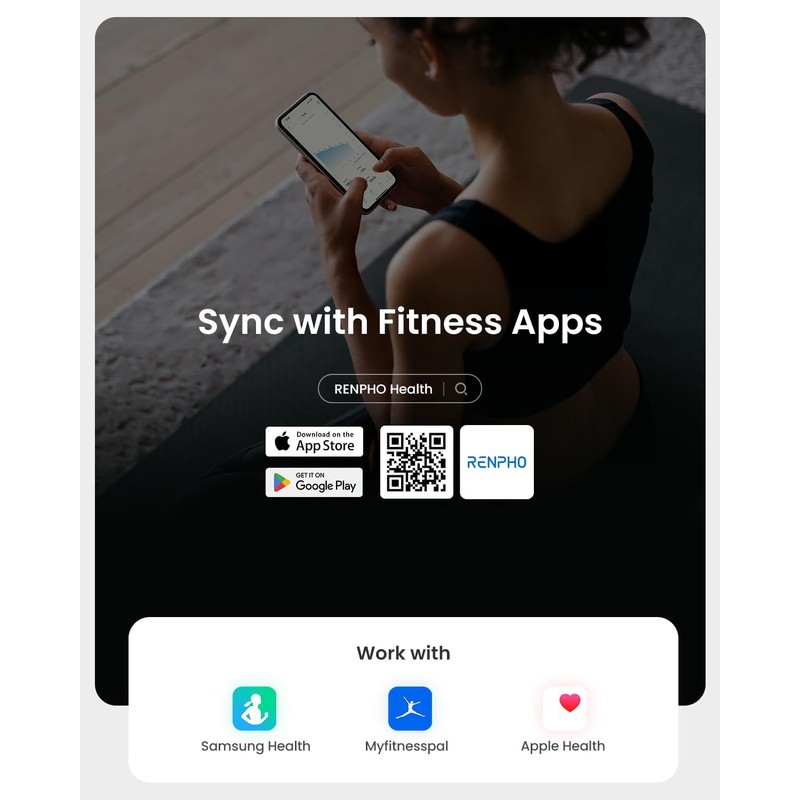 - FSA or HSA eligible. The Renpho Health app syncs with Apple Health, Samsung Health, and MyFitnessPal.