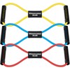 - Set of 3 Figure 8 Resistance Band: Come in 3 resistance levels: Yellow (20LB), Blue (30LB),Red (40LB). The soft rubber handles provide added comfort and a secure grip