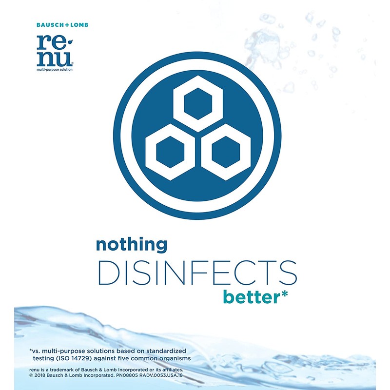 - renu ADVANCED FORMULA: Our newest contact lens innovation, this multi-purpose solution has a triple disinfectant that works in only 4 hours to kill 99.9% of germs1. Hydrate your lenses for all-day comfort.