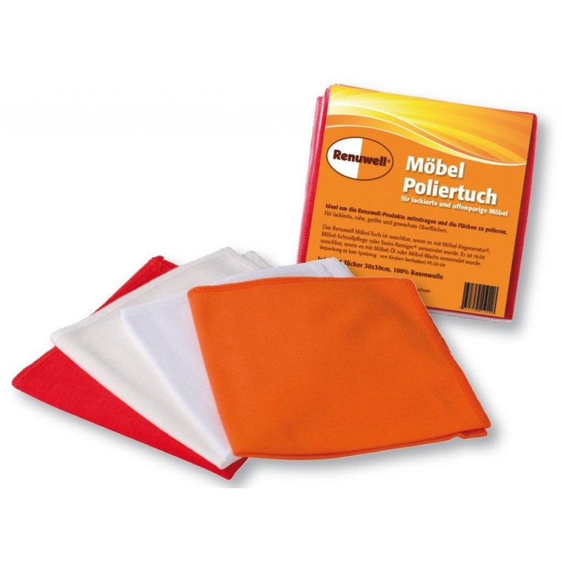 Furniture cleaning cloth Renuwell. Renuwell Furniture by the polishing cloth is made of 100% cotton, lint free and completely 11.81 x 11.81 inch tall In a bag there are 4 Wipes-various sorted the furniture Polishing Cloth is ideal for high-quality Renuwell apply to products and the treated areas to polieren. it is suitable for raw lacquered, oiled, waxed and surfaces from naturally also suitable for all other surfaces from Möbelfachmann recommended!