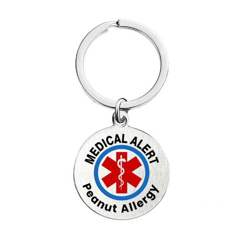 RENYILIN Stainless Steel Round Medical Alert Emergency First Aid Key Chain (Peanut Allergy)
