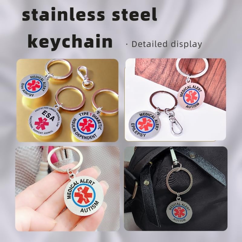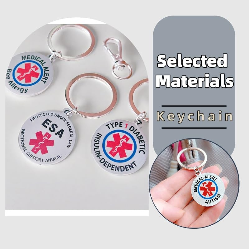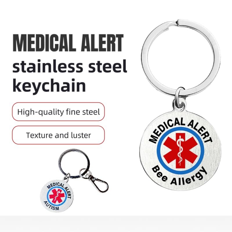 - Medical Alert Design: The key chain prominently displays a medical alert symbol, ensuring quick identification in emergencies.