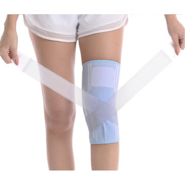 REONAS 膝サポーター テーピング 膝 サポーター スポーツ 高齢者 冷え対策 通気性の高い メッシュテープ 左右兼用1枚 トレーニング解説書付き (ブルー, L)