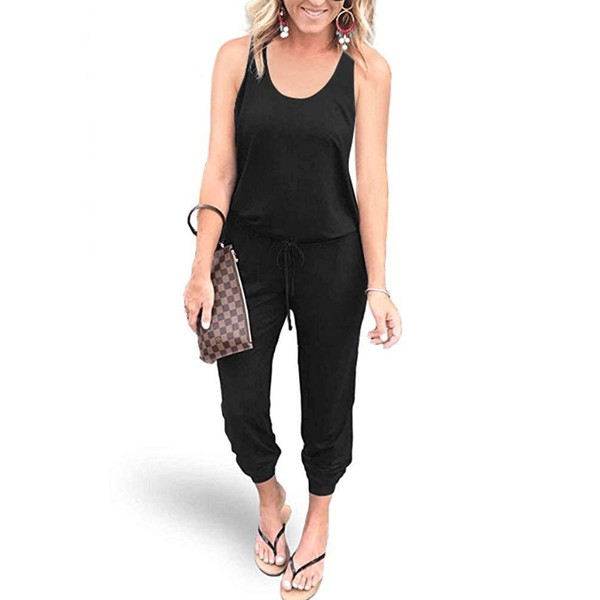 - Crew neck, loose, adjustable waist drawstring, tank top design, sleeveless, harem trousers, beam foot, loose fitting one-piece long trouser coverall. With two pockets, double crew neck, stretchy and comfortable, stylish for the evening
