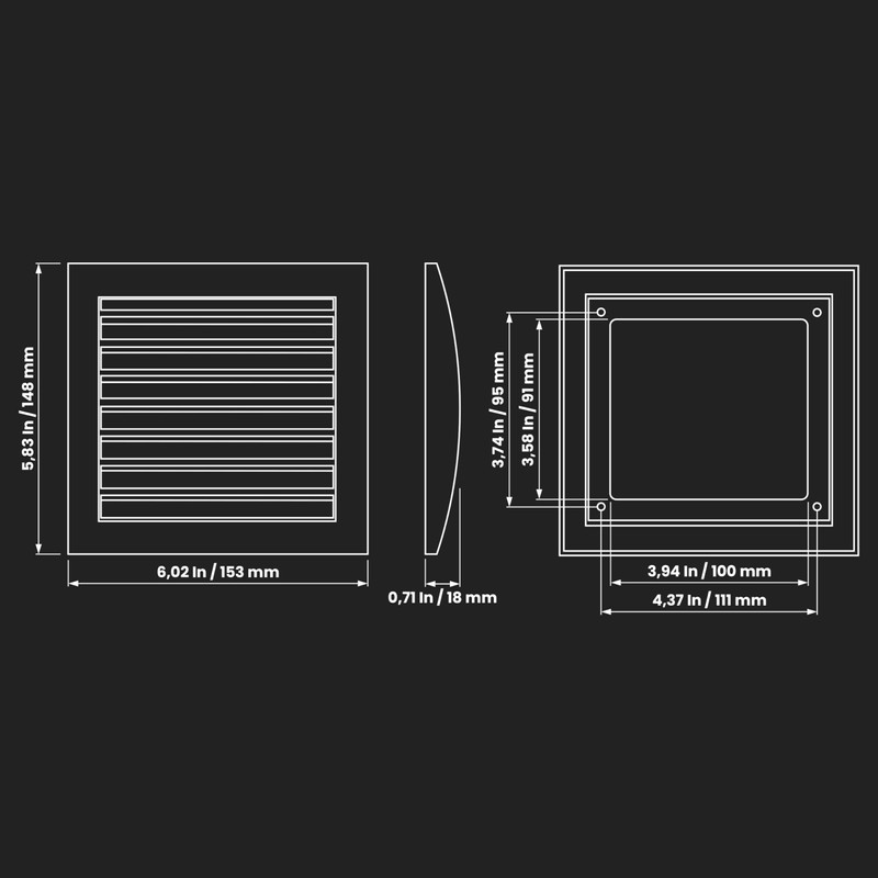 - 📐 Precise measurements - Outter dimensions: 153 x 148 mm / 6.02" x 5.28" Inch. Opening dimensions: 100 x 91 mm / 3.93" x 3.58" Inch. This vent grill cover is designed for home improvement and seamlessly integrates into your ventilation system, offering both functionality and style.