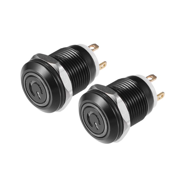 REPAIROCK 2pcs 12mm Interior Momentary Push Button Switch Metal Round Start Button SPST 1NO AC 12-24V for Car White Light Auto Replacement Parts