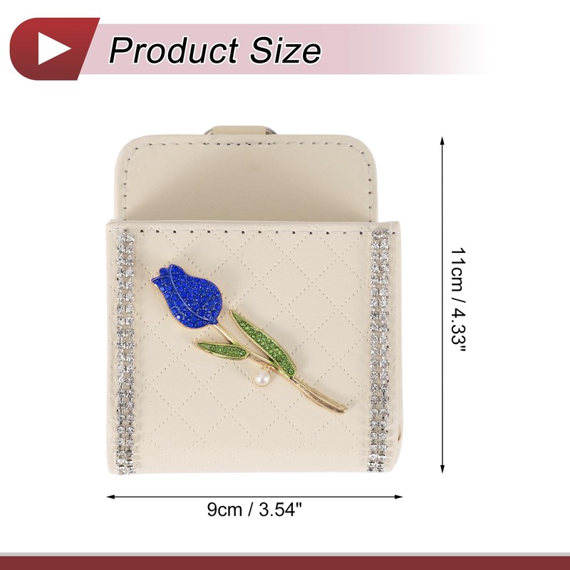 REPAIROCK Car Sunglasses Case Universal Sunglasses Holder for Car Faux Leather,Rhinestones,Metal Beige 4.33"x3.54" 1 Pcs