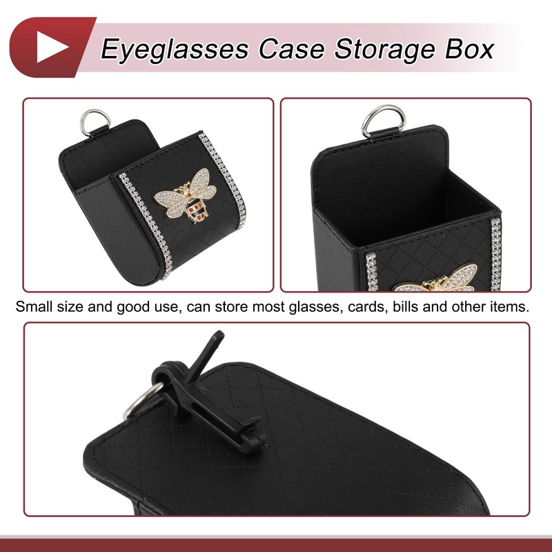 REPAIROCK Car Sunglasses Case Universal Sunglasses Holder for Car Faux Leather/Rhinestones/Metal Black 4.33"x3.54" 1 Pcs