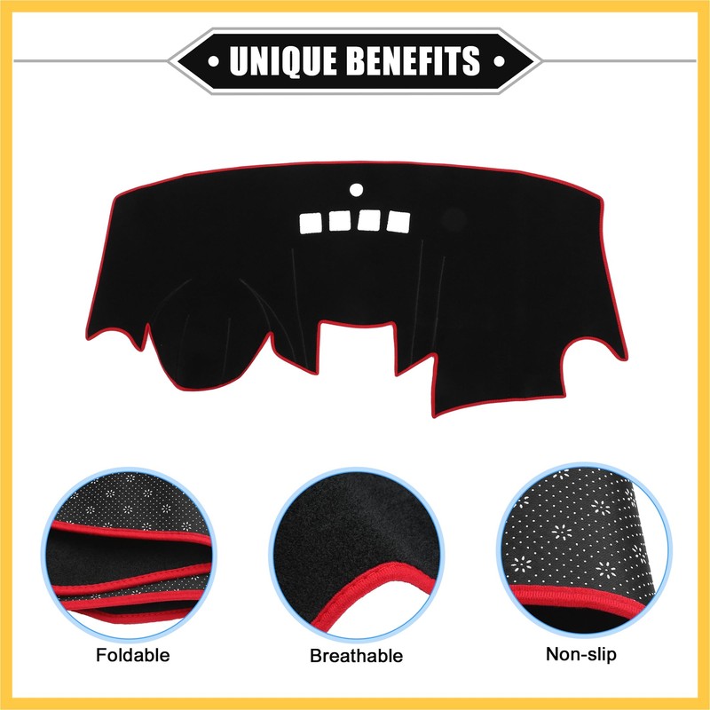 • Benefit: Unique Benefits - Reduce windshield glares from reflecting off of your dashboard surface, and guard your driving safety. The dash cover will protect your dashboard from high heat that causes cracking and fading. It also can block dirt and dust which may lead to scratches and scuffs. Keeping car interiors cooler in summer and warmer in winter.