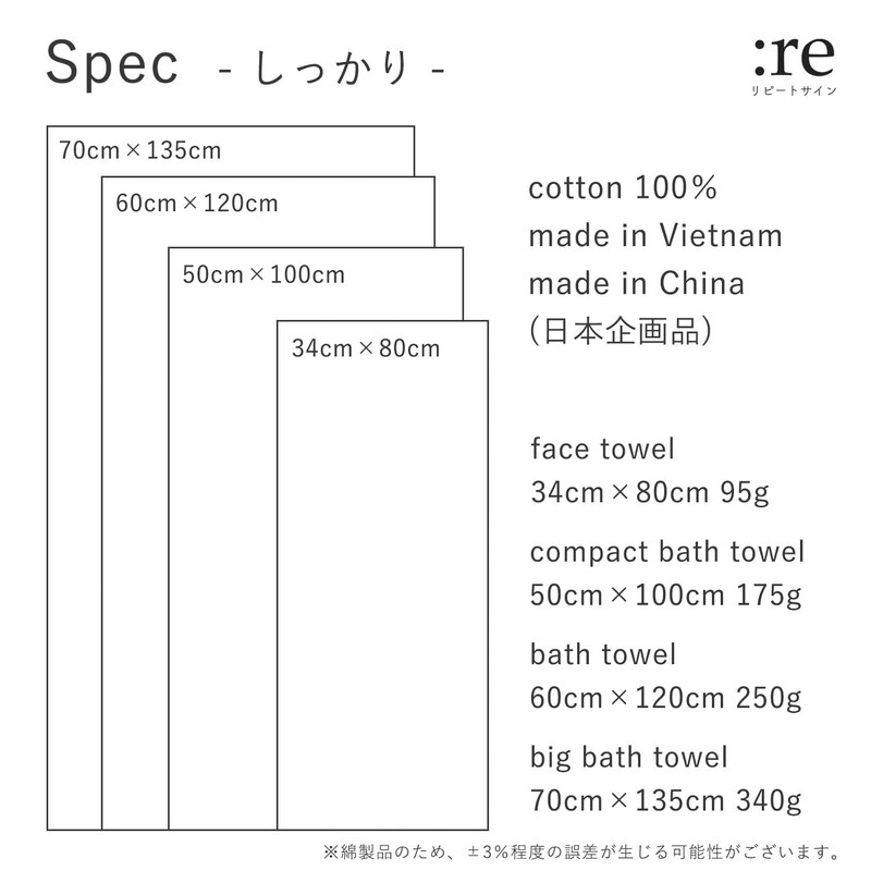 - Product Size and Weight: Face: 13.4 x 31.5 inches (34 x 80 cm), Approximately 3.4 oz (95 g); Compact Bath (Mini Bus): 19.7 x 39.4 inches (50 x 100 cm), Approximately 60 x 120 cm (250 g); Colors: Beige, Cafe Ore, Gray, Mist Blue, New Brown, New Brown, Navy, Rose, R Stripe, R Stripe, R Stripe, R Stripe. Blue, R Stripe Green R Stripe Red, Y Beige, Y Brown, Y Dark Gray, Y Navy, Y White, Y Stripe Beige, Y Stripe Brown, Y Stripe Dark Gray, Y Stripe Gray, Y Stripe Navy Material: 100% Cotton. Country of Origin: China, Vietnam (varies by lot)
