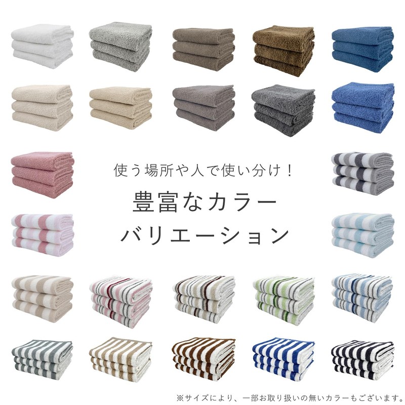 - (Sturdy Daily Towel) Made of 100% high grade cotton with a focus on absorbency. It is not too thick or too thin, and has just the right amount of volume, and it has a firm wiping experience. Furthermore, the stitching has been carefully made, so it won't fray even if the pile gets caught, making it durable and long-lasting. These towels are made to the standard for everyday use
