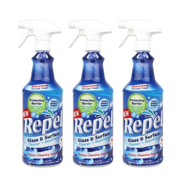 Repel® Glass & Surface Cleaner- Cleans, Seals and Protects from Water Spots- 25 oz – 3 Pack by Clean-X by Clean-X Store