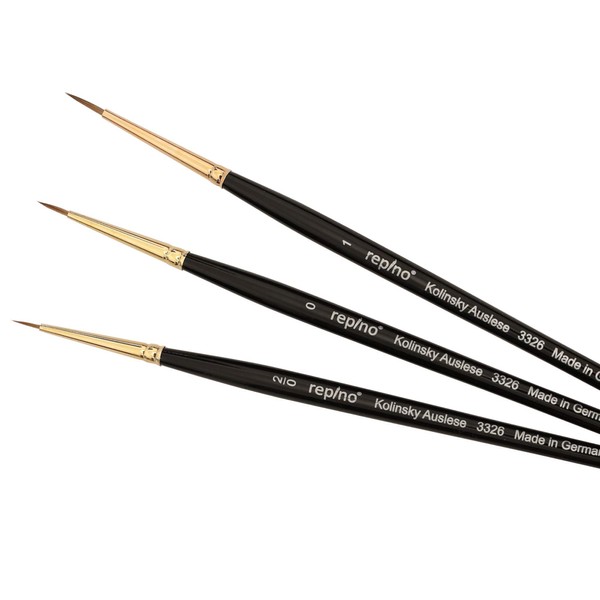 Repino Kolinsky Red Sable Hair Brush Set Fine Thin Size 2/0, 0, 1