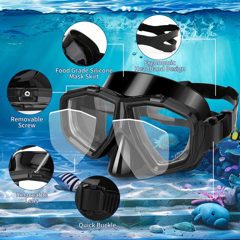 - 【Nearsighted Diving Mask】 -1.5,-2.0,-2.5,-3.0,-3.5,-4.0,-4.5,-5.0,-5.5, -6.0 for choice, suitable for myopia divers.It's great snorkeling gear for adults.