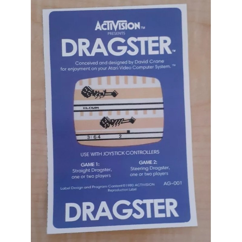 Replacement Atari 2600 Activision Dragster Label Machine cut