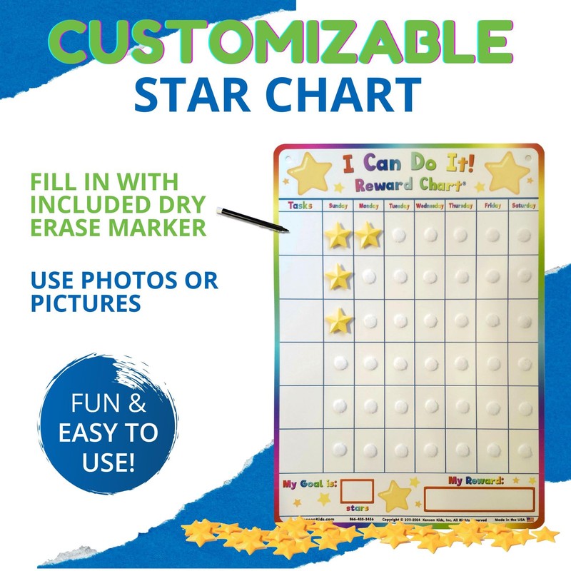 Customizable Dry Erase Incentive Chart with Marker and 45 Reward Stars, Replacement Board and Stars for I Can Do It Reward Chart by Kenson Kids