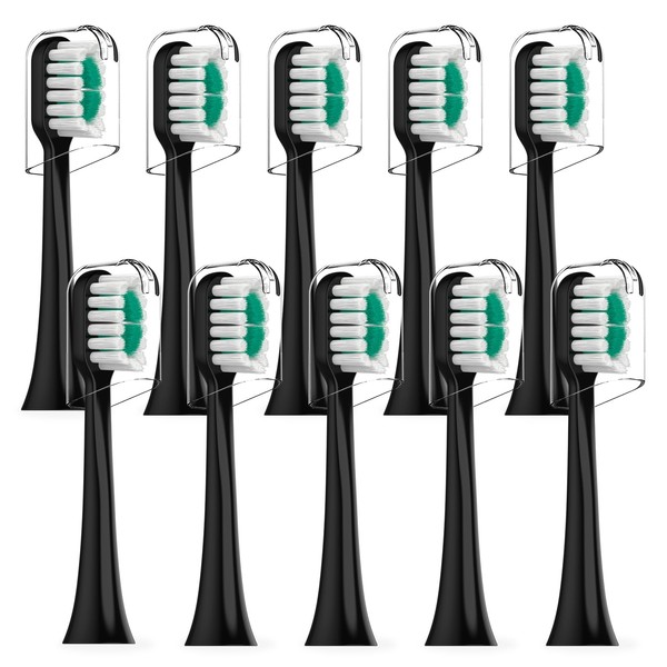 Replacement Brush Heads Compatible with AquaSonic icon Electric Toothbrush, 10 Pack, Black