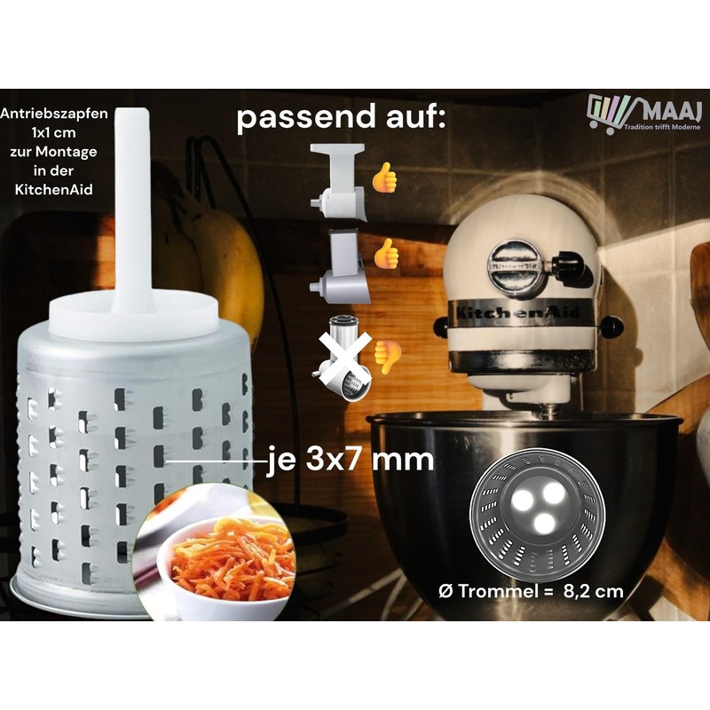 - 1 x replacement drum for vegetable cutter / ravel attachment from Messerschmidt or MVSA with direct connection for KitchenAid (old model)