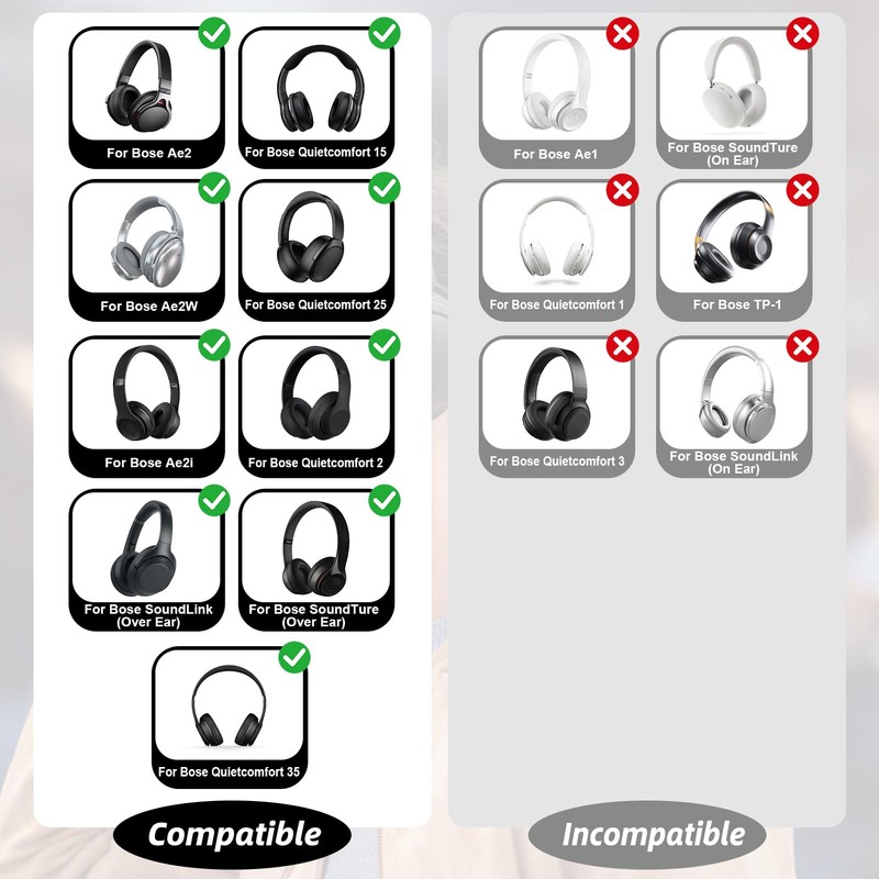 - UNIVERSAL COMPATIBILITY - This replacement ear pad is compatible with multiple models of Bose headphones, including QC35, QC25, QC15, QC2, Ae2, Ae2i, Ae2w, SoundLink and SoundTrue. You no longer have to worry about compatibility with your headset.