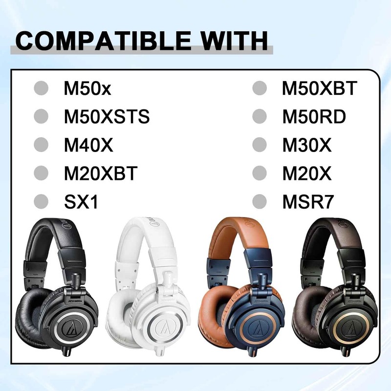 - The replacement ear pads are compatible with Audio Technica ATH M50X M50XBT M50RD M40X M30X M20X MSR7 SX1 Monitor Headphones.