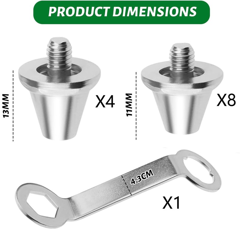 Replacement Football Shoe Studs, Football Boots Replacement Studs, Replacement Cleats for Optimal, Screw Studs, Football Replacement Studs, 8 Silver 11 mm, 4 Silver 13 mm, 1 Silver Wrench