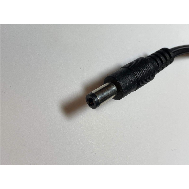Connector at the end is 5.5mm x 2.1mm / 2.5mm (inner spring opens to 2.5mm and rests at 2.1mm)