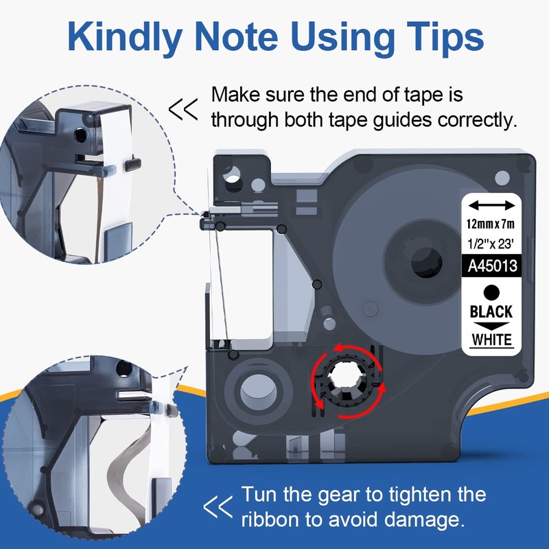 - [Widely used] Compatible with Dymo 1/2'' x 23' label tape is ideal organiazation for indoor and outdoor such as factory, office, school, home, shop, hospital, hotel, lab and so on. Print clear and durable Labelife 45013s label tape to meet your daily needs! It makes work and life more organized and tidy