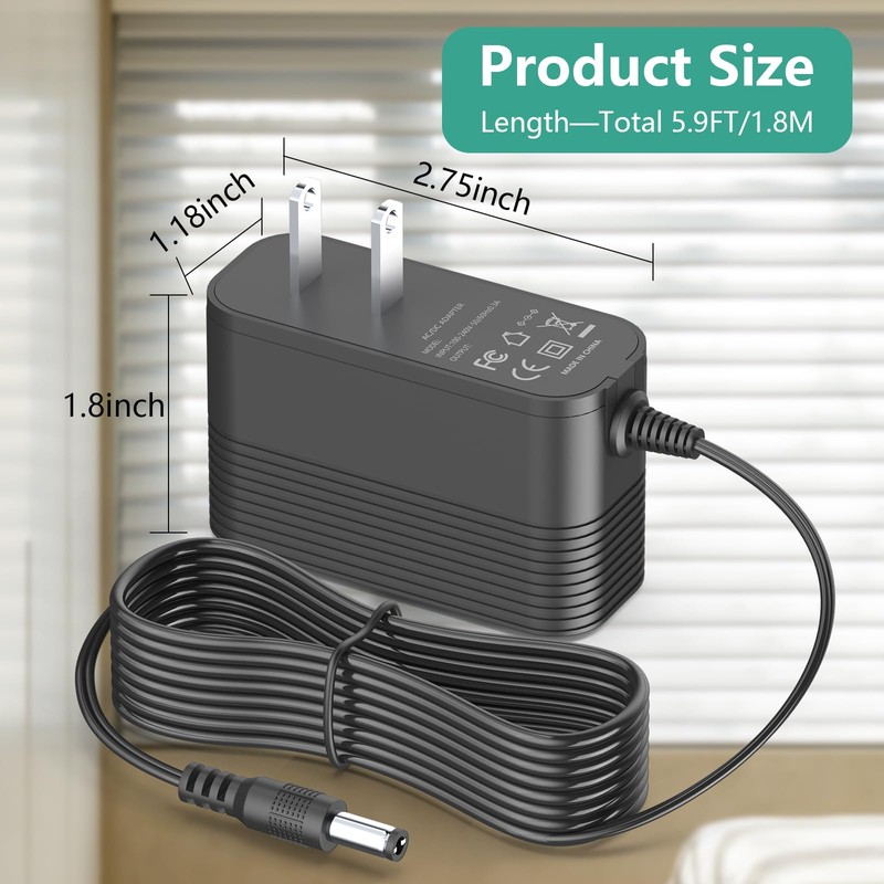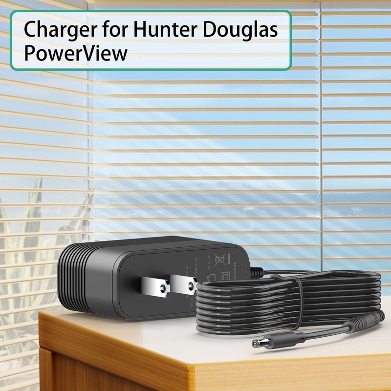 • 【Charger Specifications】replacement for Hunter Douglas battery charger. Input: AC 100-240V 50/60Hz; Output: DC 16.8V 2A; Cord length: 1.8M/5.9FT
