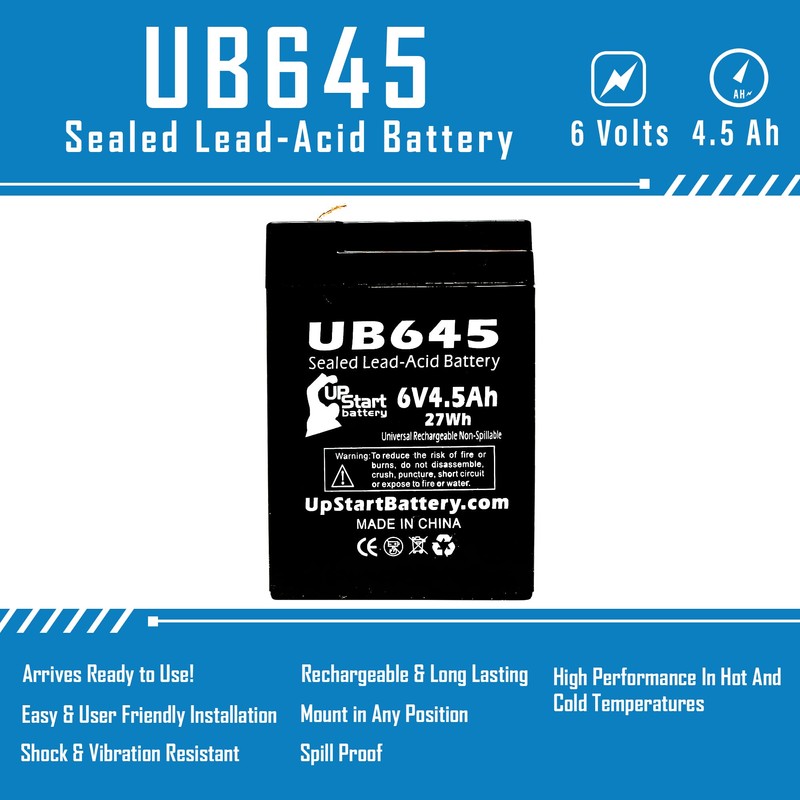 • Capacity: 4.5Ah, 4500mAh, F1 Terminals, Upstart Battery Brand, Includes TWO F1 to F2 Terminal Adapters