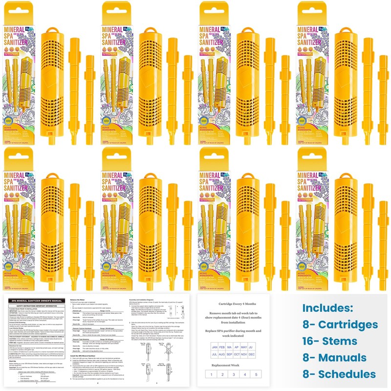 Replacement for Nature2 W20750 Spa Mineral Sticks Hot Tub in-Filter Cartridge Last for 4 Months Universal for Hot Tub Spa Swimming Pool All Spas Flow Rates Up to 1000 Gallons (Yellow 8-Pack)