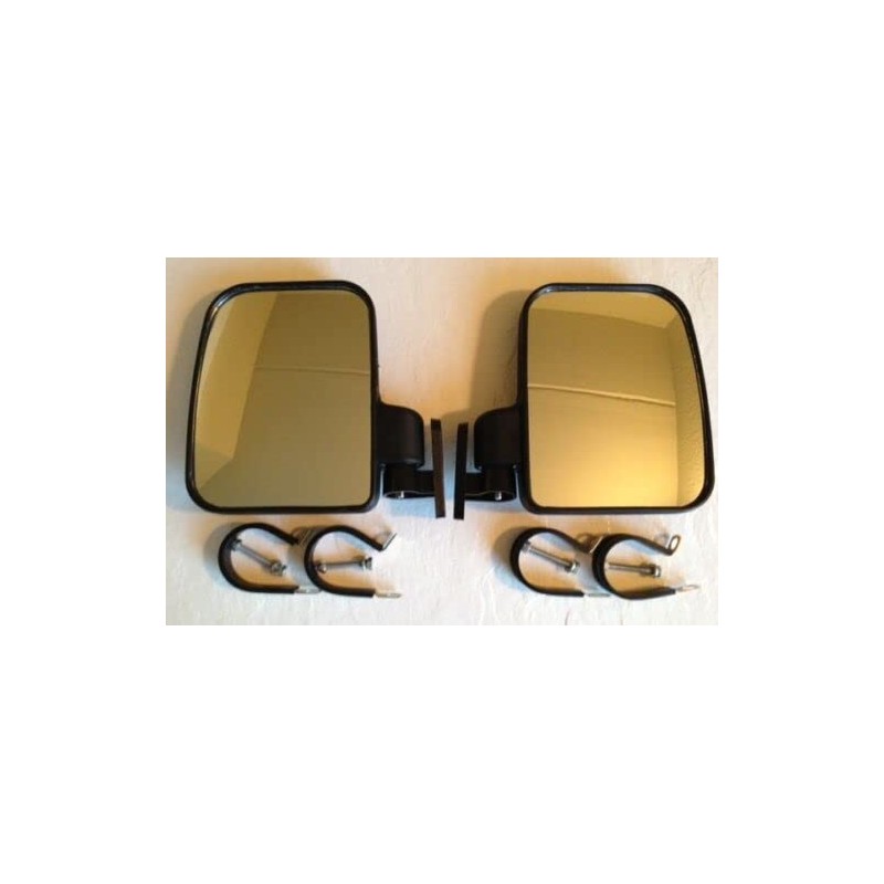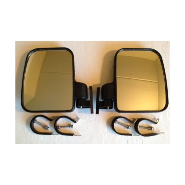 - ~ Large viewing area, 7" x 5.5" ~ Slight convex curve to see all behind you. ~ Break-a-way feature; folds in to avoid breakage/storage. ~ Mirrors move on a spring tensioned socket for full range adjustment. ~ Mounts on units w/ many styles of windshields and tops.