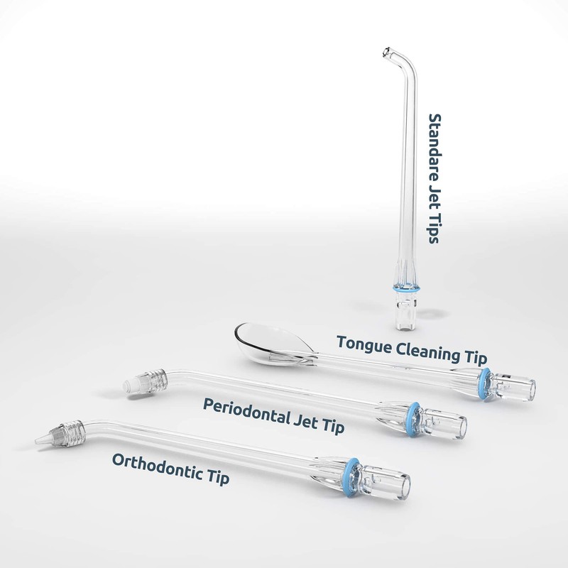 - 【Different nozzle tips】 4 different Tips could meet different need and function of your water flosser, clean deep between teeth and below the gumline where brushing can't reach.