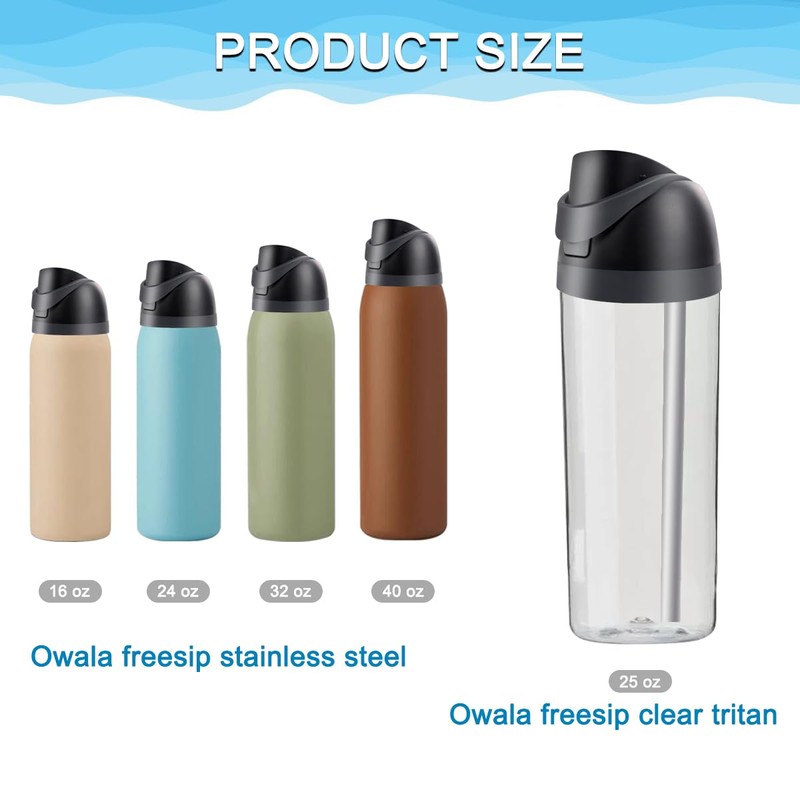 • Compatibility: This lid replacement and straw are designed for wide-mouth bottles. And compatible with various sizes of Owala Freesip stainless steel water bottles (16oz, 24oz, 32oz, 40oz), ensuring seamless adaptation.