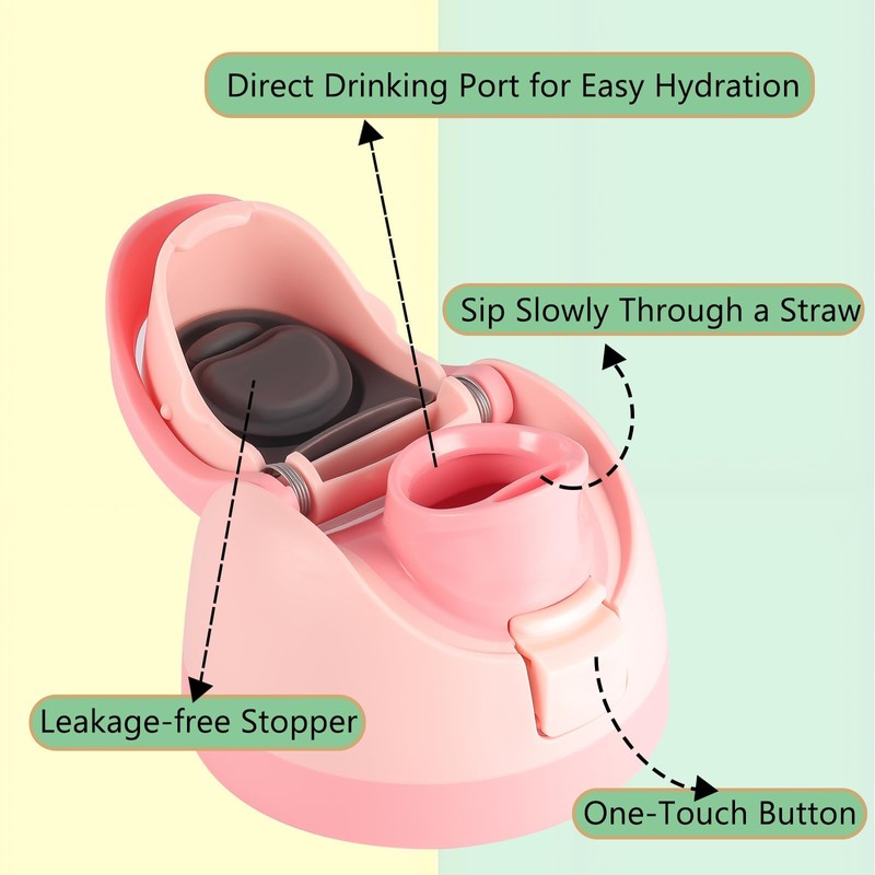 - One-Button Operation: Simply press the button to open the lid and enjoy a smooth flow of liquid without removing the entire cap.Stay hydrated with ease, whether you’re at the gym, office, or on the go