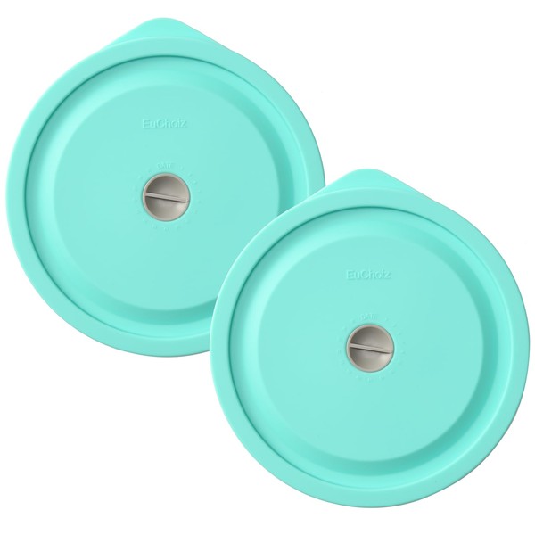 Replacement Lids for Pyrex 7200-PC 2 Cup, Silicone Round Storage Cover Lid for Anchor Hocking Glass Bowl 2 Pack with Date Mark Turquoise