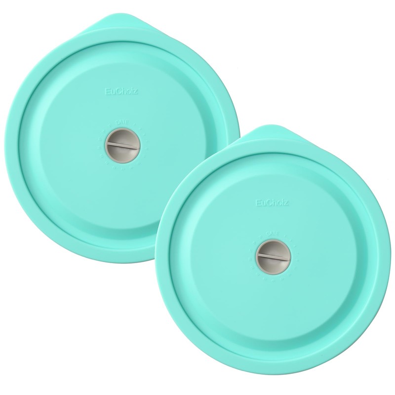 Replacement Lids for Pyrex 7201-PC 4 Cup, Silicone Round Storage Cover Lid for Anchor Hocking Glass Bowl 2 Pack with Date Mark Turquoise