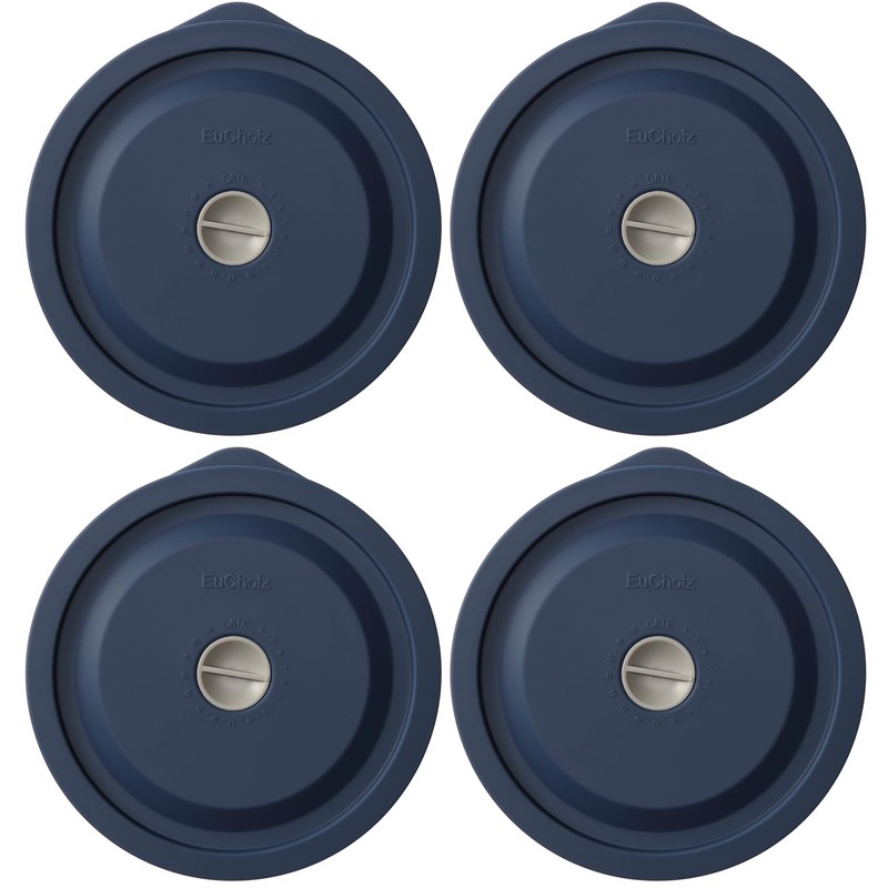 Replacement Lids for Pyrex 7201-PC 4 Cup, Silicone Round Storage Cover Lid for Anchor Hocking Glass Bowl 4 Pack with Date Mark Dark Blue