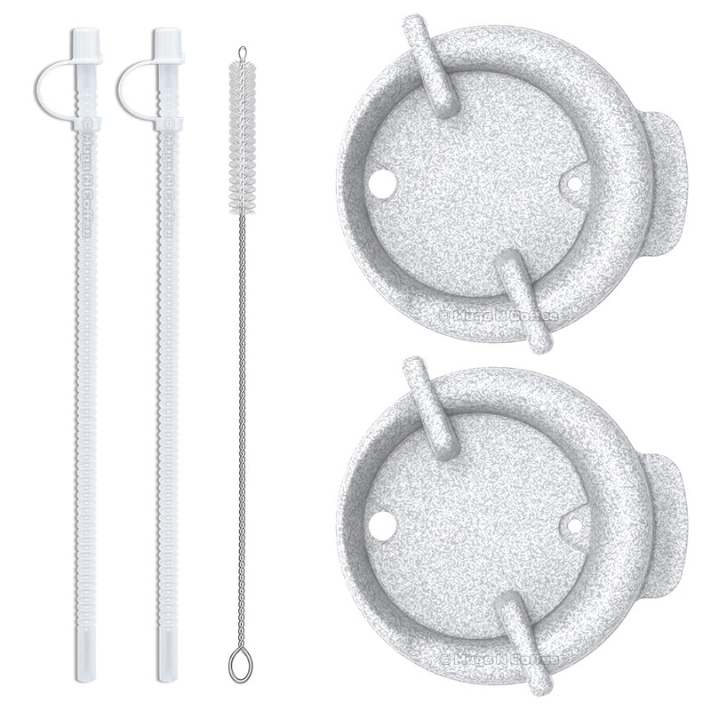 Mugs N Coffee Replacement Lids with 11” Reusable Straws & Cleaning Brush for 32 oz Whirley Drink Works Mugs – Granite – BPA-Free – Made in USA