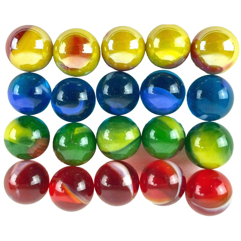 - Design: Simple, single-colored marbles. Marbles with colorful, swirling patterns inside, resembling a cat's eye. Marbles made from agate, known for their natural, stone-like appearance. Marbles with a lattice-like pattern inside. Clear marbles with a small figure or object encased inside