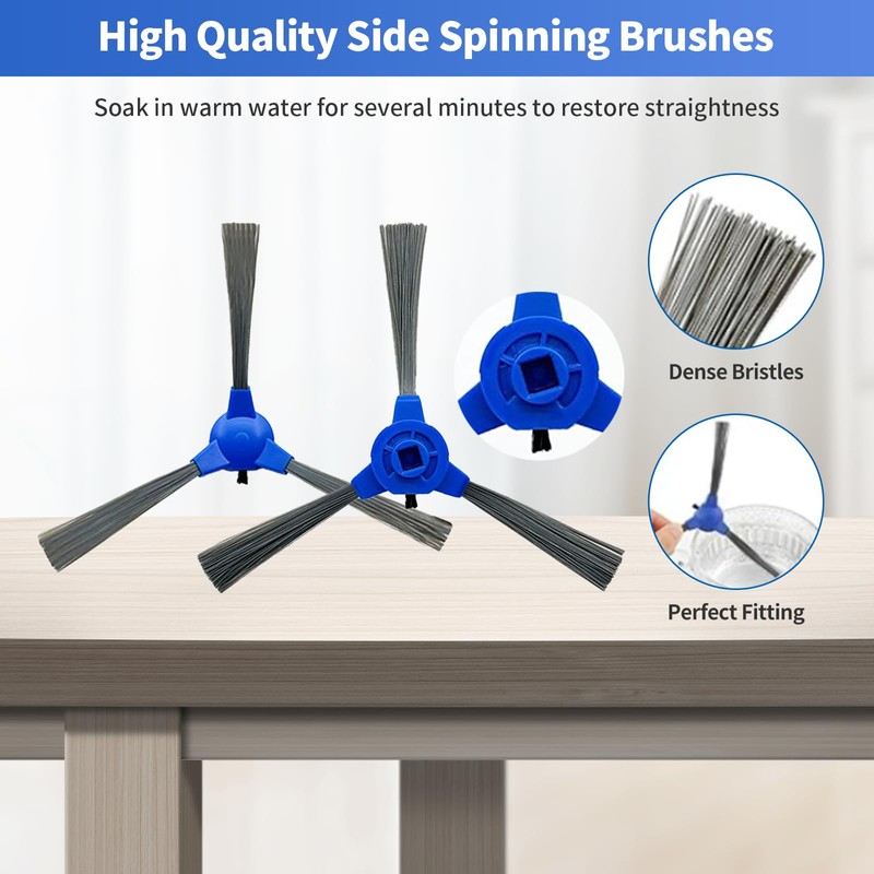 - 【Tips】: If the side brushes are bent or curled due to shipping, please recover them by simply soaking them in warm water for several minutes. It will not affect the quality and performance.