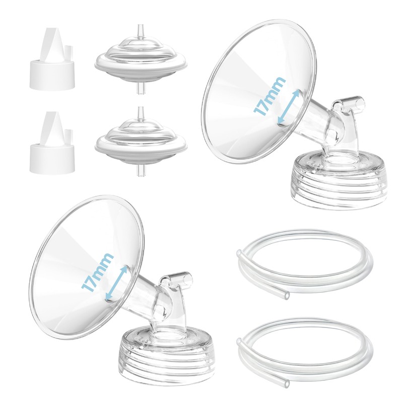 Replacement Pump Parts for Spectra S1/S2/9 Plus/Synergy Gold, CubCare 17mm Set Replacements Include Spectra Flange/Duckbill Valve/Backflow Protector/Tubing/Nipple Measure Ruler