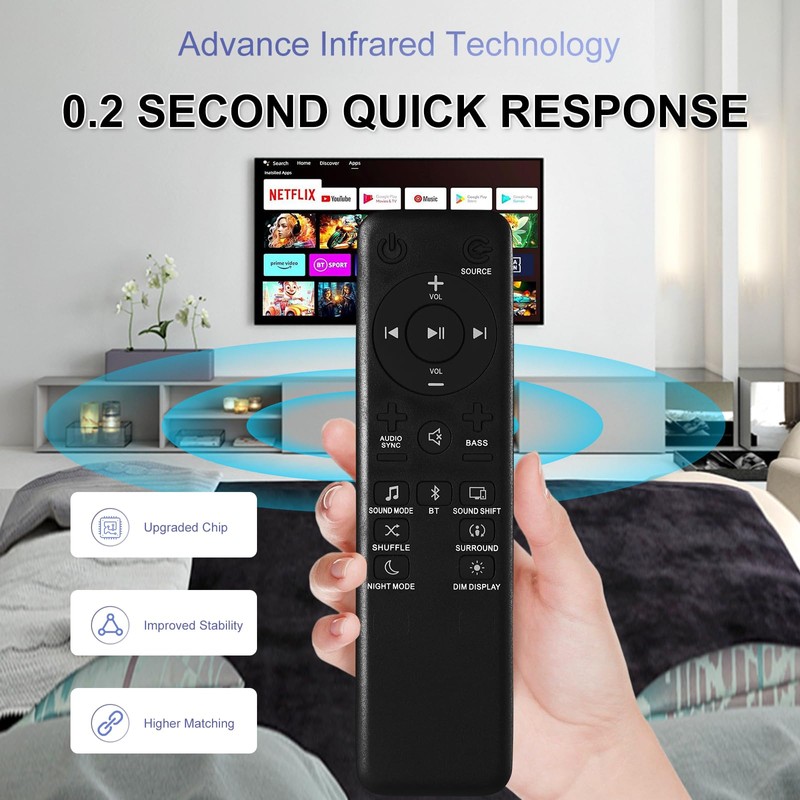 - 🎛️ Full Functionality: Features all essential buttons, including power, volume, input, sound modes, and more, for complete control of your soundbar.