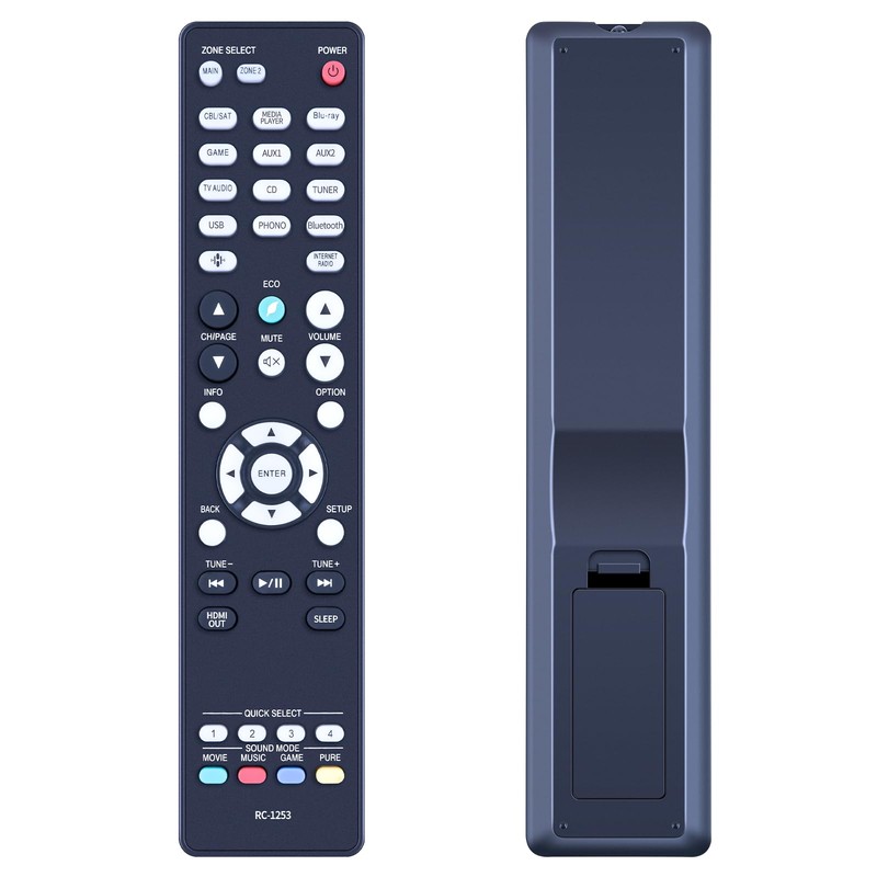 - 2. 【Easy to Use & Family-Friendly Design】With its intuitive button layout and straightforward functionality, the RC-1253 Remote Control is incredibly easy to use for all ages. Its ergonomic design fits comfortably in your hand, while the clearly labeled buttons make navigating your AV Receiver a breeze. Perfect for family movie nights or everyday use!