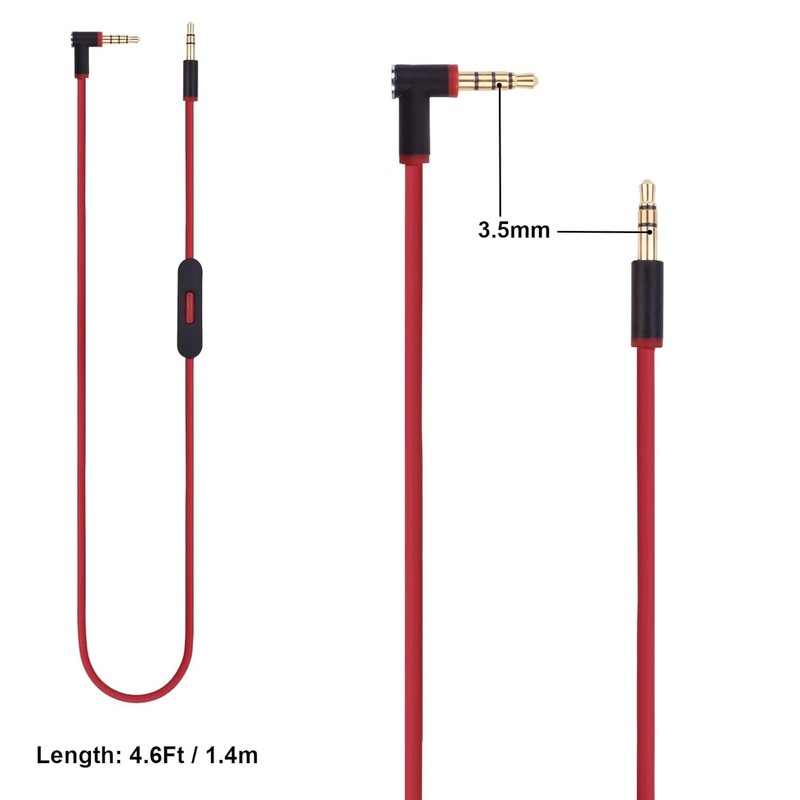 - Two male plugs:The 4.6ft (1.4m) length provides freedom of movement, while the 3.5mm TRS (straight) and TRRS "L" plug (device) ensure a secure fit