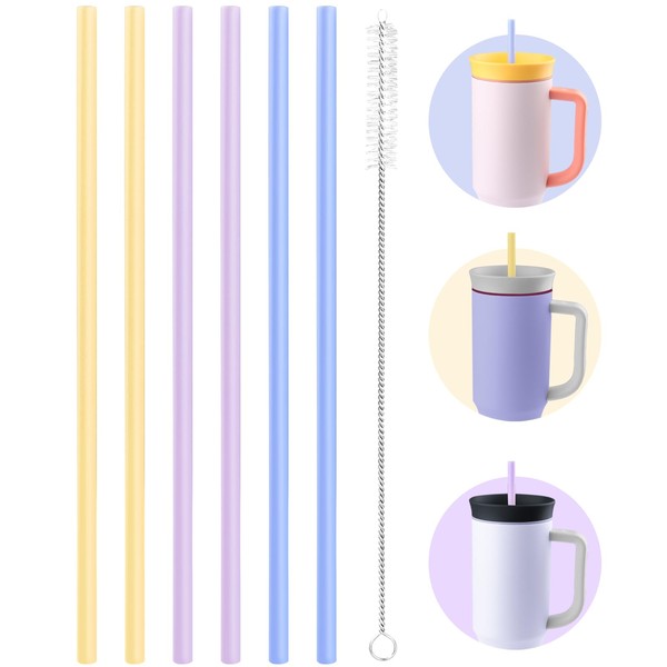 Replacement Straws Compatible with 40 Oz Owala Travel Tumbler with Handle- Include 6 Pack Multicolor Straws and 1 Pack Cleaning Brush