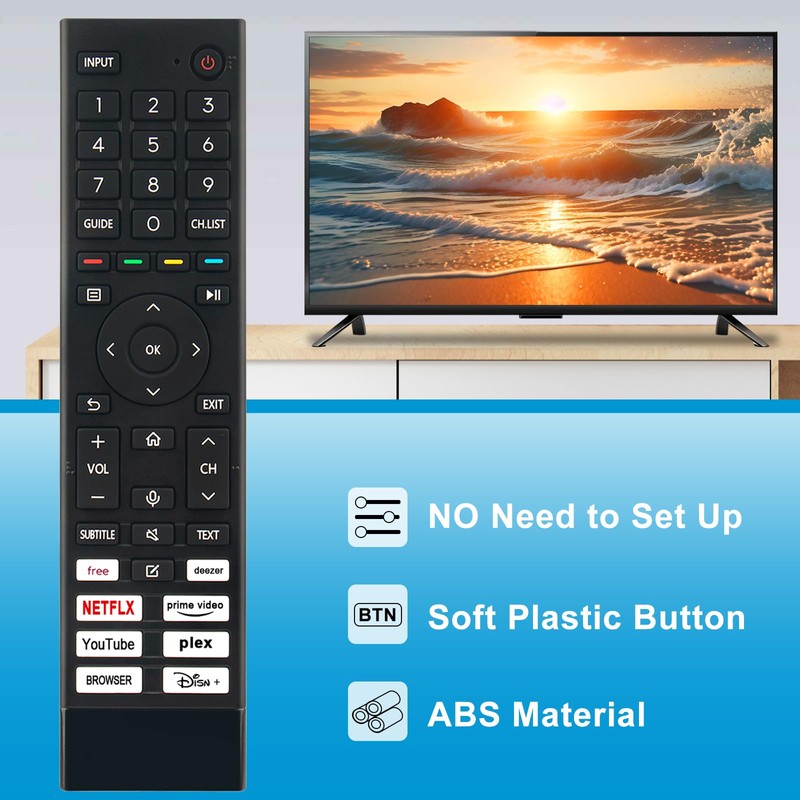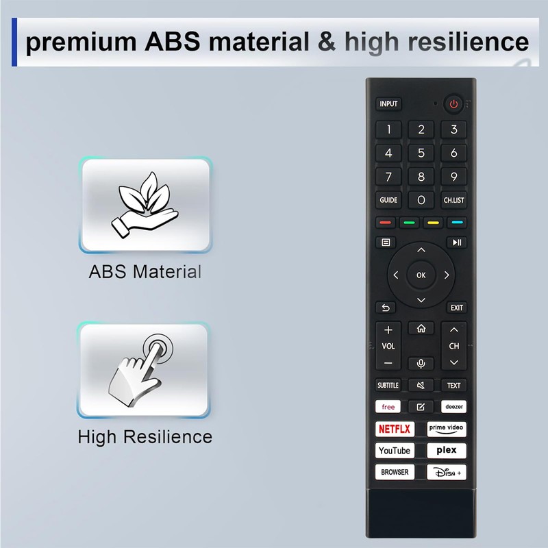 - Material: The remote control is made of ABS material and the buttons are made of soft rubber; thanks to the excellent printing technology, the text will not fall off even after a long time.